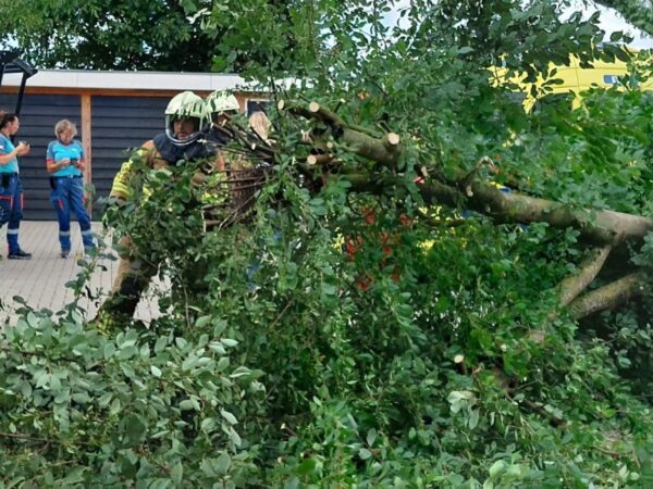 Ambulancepersoneel merkte op dat de boom mogelijk om kon waaien. Kort daarop viel deze daadwerkelijk, precies waar de ambulance stond. Gelukkig raakte niemand gewond.
