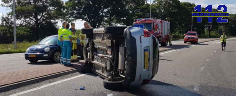 Auto belandt op zijn kant bij Ommen zondag 9 juli 2017 Gert Stegeman Beelden Klaas Lunshof. Ommen – Een auto is vanochtend op zijn kant beland op de N48 bij de rotonde in Ommen. De bestuurder kwam met de schrik vrij. Onderzocht wordt of de bestuurder onder invloed was.