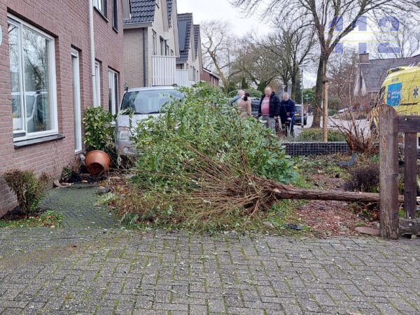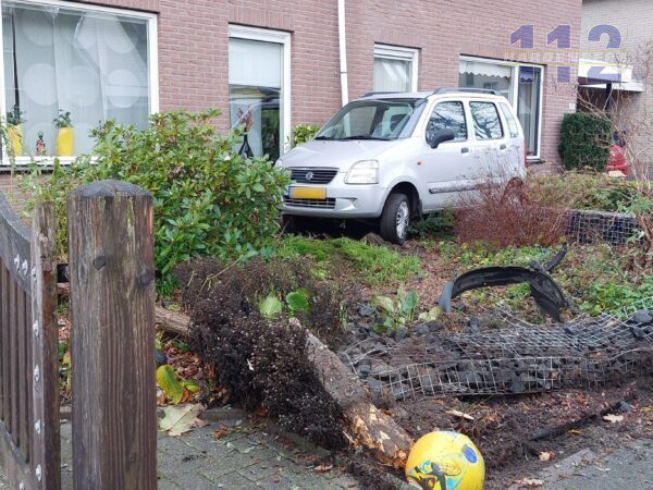 De auto en de voortuinen hebben schade opgelopen. De schade aan de woningen lijkt mee te vallen.