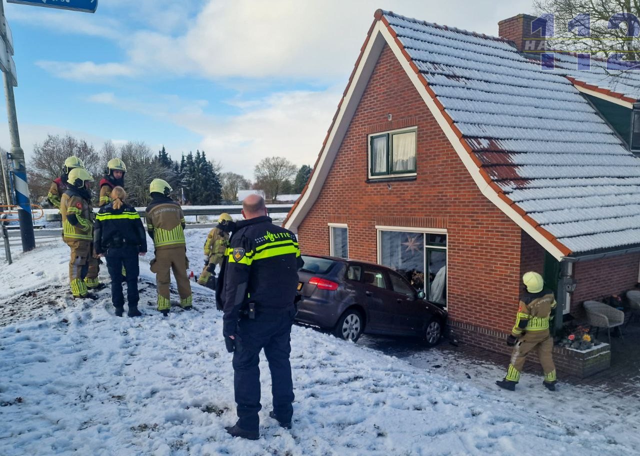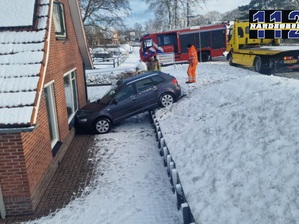 De brandweer heeft de woning gecontroleerd op mogelijke scheuren en andere constructieve schade aan de muur. Een bergingsbedrijf heeft het voertuig vervolgens opgetakeld en afgesleept.