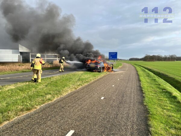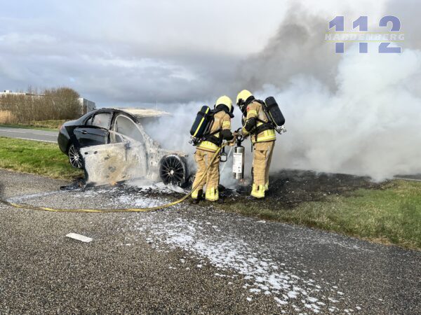 De toegesnelde brandweer heeft de brand geblust maar de auto kan als verloren worden beschouwd. Vermoedelijke oorzaak is kortsluiting. Een berger zal de auto afslepen.
