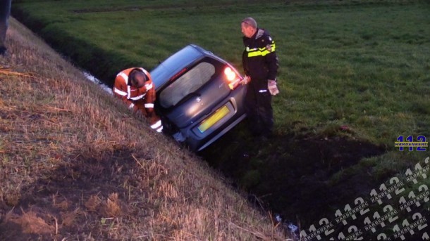Een auto is vanmorgen is net buiten Slagharen van de weg geraakt en in een sloot beland.