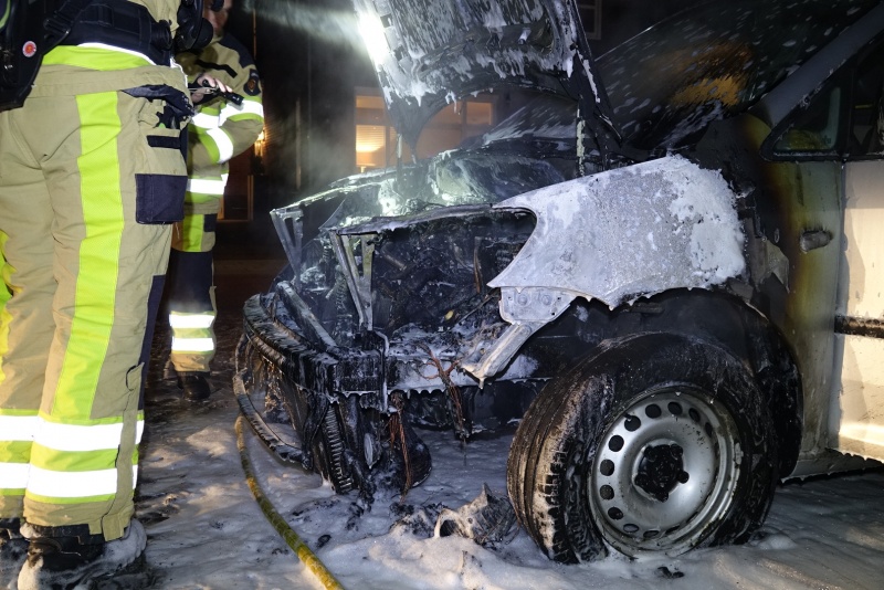 De binnenkant van de auto is zwaar beschadigd geraakt. De auto wordt weggesleept. De politie doet onderzoek naar het ontstaan van de brand.