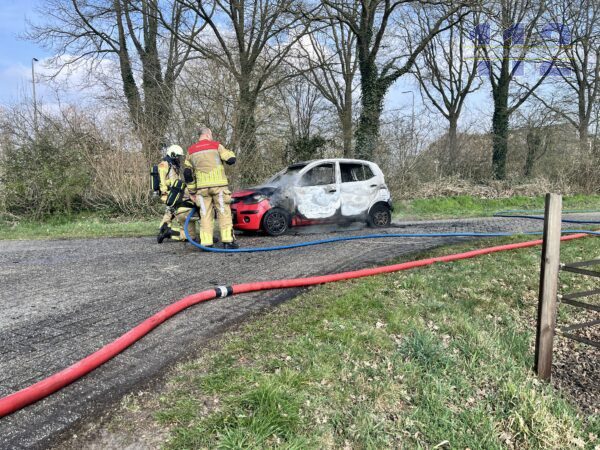 De auto is tijdens het rijden in brand gevlogen. De bestuurder wist op tijd uit de auto te komen en bleef ongedeerd. De toegesnelde brandweer heeft de brand geblust, maar de auto ging verloren.