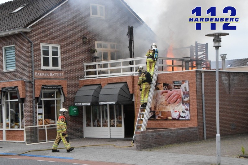 Hardenberg – Bij een bakker aan De Brink in Hardenberg is vanmiddag brand uitgebroken. Op het dak van de bakkerij was door nog onbekende oorzaak brand uitgebroken. De brandweer schaalde al snel op naar een middelbrand, om te voorkomen dat de brand naar binnen doorsloeg. Dat is de brandweer uiteindelijk gelukt. De bakkerij heeft veel rook- en waterschade opgelopen. Er is niemand gewond geraakt.