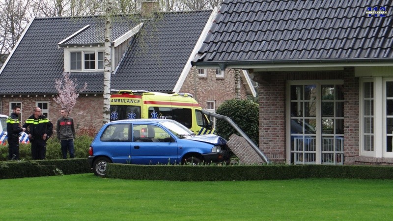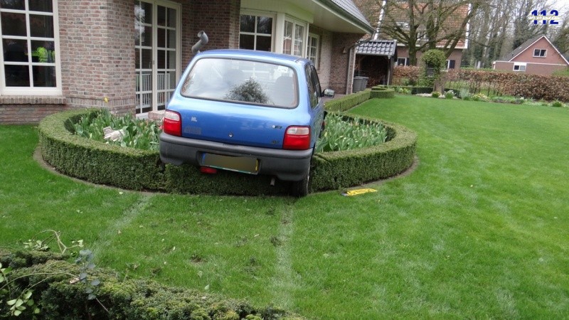 Mariënberg – Een bejaarde automobiliste sloeg maandagmorgen linksaf vanaf de Hardenbergerweg naar de haar woning aan de Tweede Elsweg, maar ze trapte daarbij op het gaspedaal van haar Suzuki Alto in plaats van op de rem. Het autootje schoot daardoor via een heggetje de tuin van de hoekwoning in en botste tegen een steunpilaar, die het voertuig ervan weerhield de woning zelf te rammen. De auto kwam via een tweede heggetje in een bloemperk tot stilstand.