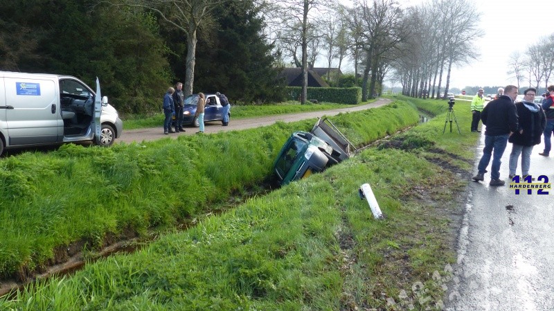 Dedemsvaart – Een bestelwagen is met een tandemasser op de N 377 bij Dedemsvaart van de weg geraakt en in de sloot beland.