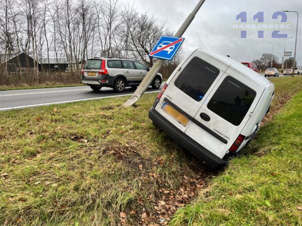 Op de N377 bij Dedemsvaart is vanmiddag een bestuurder met zijn bestelauto tegen een lantaarnpaal gebotst.