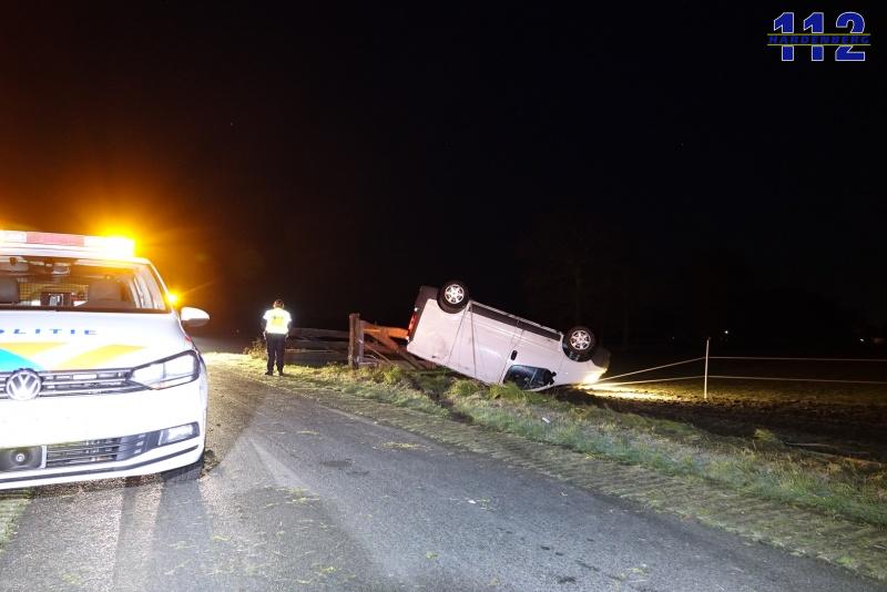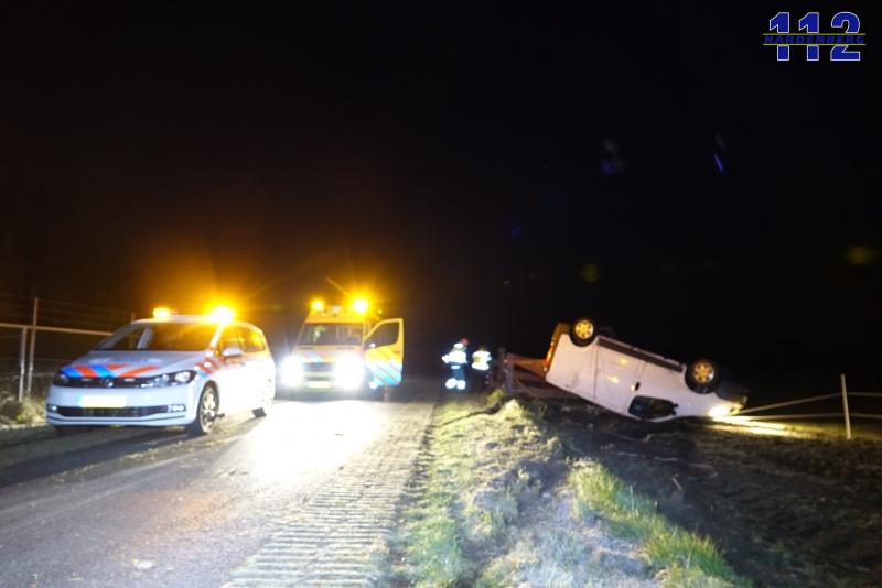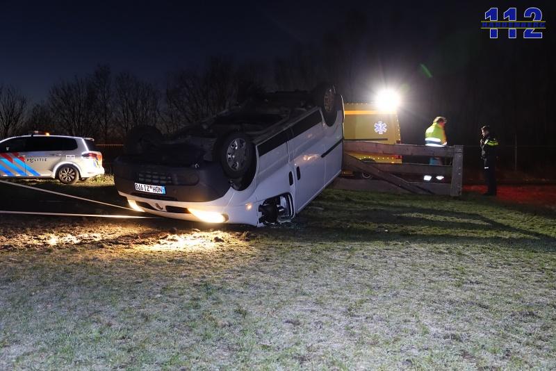 Kloosterhaar – Het kan lokaal heel glad vanochtend en dat bleek ook op de Balderhaarweg in Kloosterhaar. Een bestelbusje raakte daar van de weg en belandde op de kop in het naastgelegen weiland. De bestuurder van het busje, een Nederlander woonachtig in Duitsland, raakte gewond bij het ongeval.