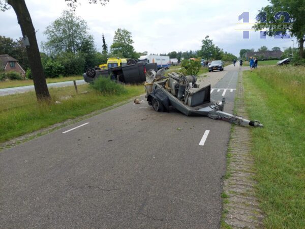 De bestuurder van de bestelbus raakte gewond en is met onbekend letsel naar het ziekenhuis gebracht. Een berger gaat de bus en aanhanger afslepen. Het verkeer ondervind hinder van het ongeval.
