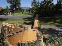 Hier was een boom getroffen door de bliksem tijdens onweer en was helemaal gespleten, daardoor dreigde de boom om te vallen op het fietspad van de Hardenbergseweg.