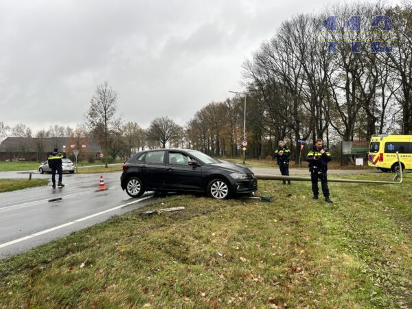 Een voertuig schoot door en ramde een lantaarnpaal. Hulpdiensten waren snel ter plaatse. Eén persoon is ter plekke gecontroleerd; over letsel is niets bekend.