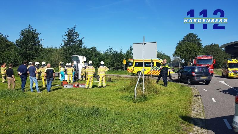 Arriën – Bij een botsing tussen een auto en een busje op de Schapendijk zijn vanmorgen twee gewonden gevallen. De brandweer is te hulp geroepen om slachtoffers die bekneld zitten in het busje te bevrijden. Het busje ligt op zijn kant in de berm van de weg.