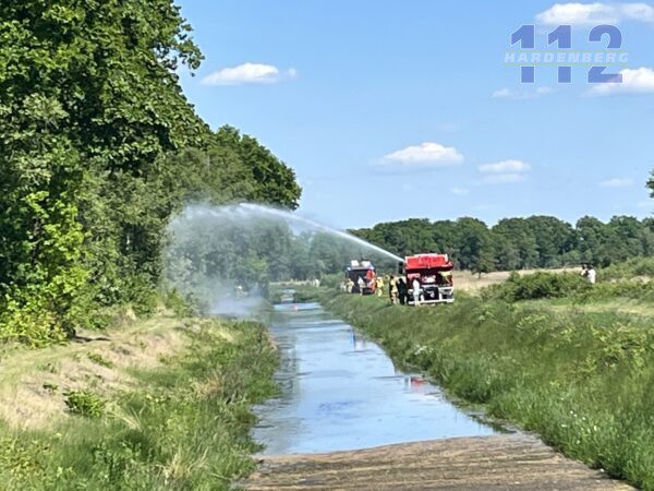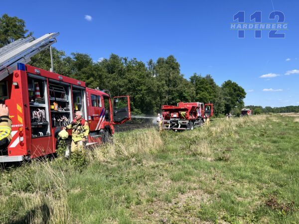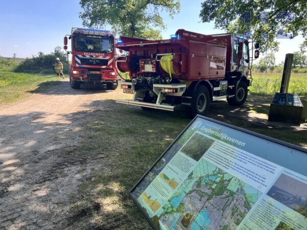 Vanwege de droogte rukte de brandweer met groot materieel uit en schaalde op naar een middelbrand. Ze proberen verdere uitbreiding te voorkomen.