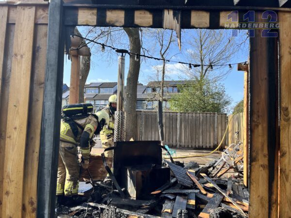 In de tuin is wel flinke schade ontstaan. De hottub en een deel van de schutting gingen in vlammen op.