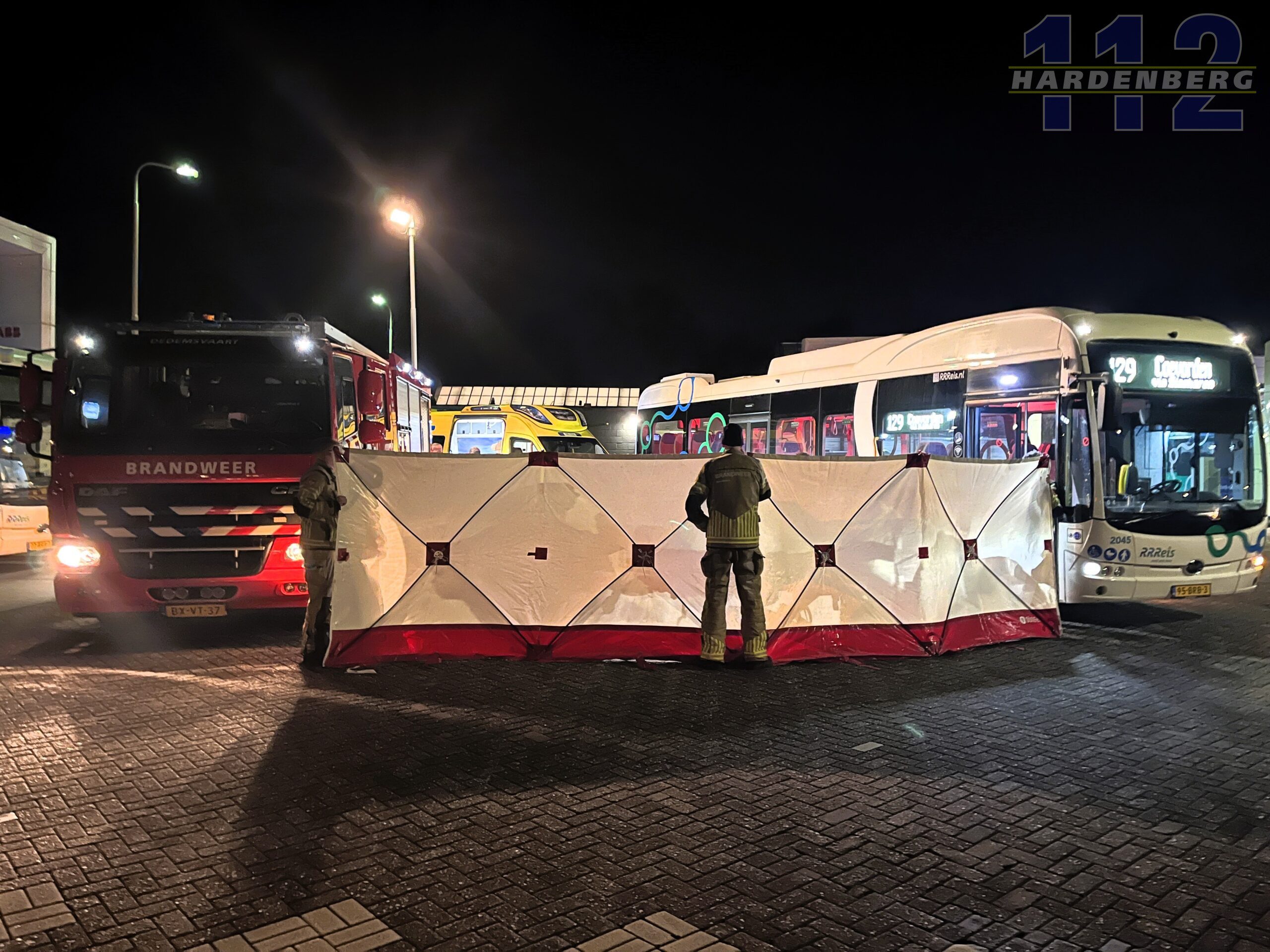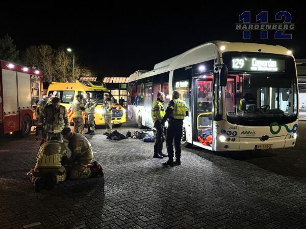 Bij het busstation aan de Hoofdvaart in Dedemsvaart raakte vanavond een man bekneld nadat hij met zijn rollator tegen een lijnbus kwam.