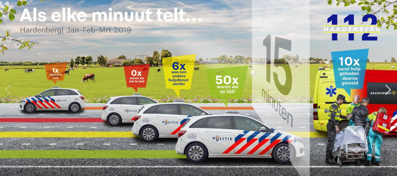 De cijfers in de infographic zijn tot stand gekomen doordat we een verdiepende analyse hebben gedaan op de resultaten van de reactietijden. Zo zijn bijvoorbeeld dubbele meldingen eruit gehaald en is gekeken of de melding eerst aan een andere hulpdienst is uitgegeven (bijvoorbeeld ambulance en brandweer). Bij incidenten waar we samenwerken met de ambulancedienst, zorgt het ambulancepersoneel met name voor de gezondheid van het slachtoffer. De politie zorgt ondertussen voor een veilige werkplek voor de hulpverlening, vangt familie op of brengt deze op de hoogte van het incident. Zo heeft ieder zijn eigen taak en zorgen we samen voor het beste resultaat!