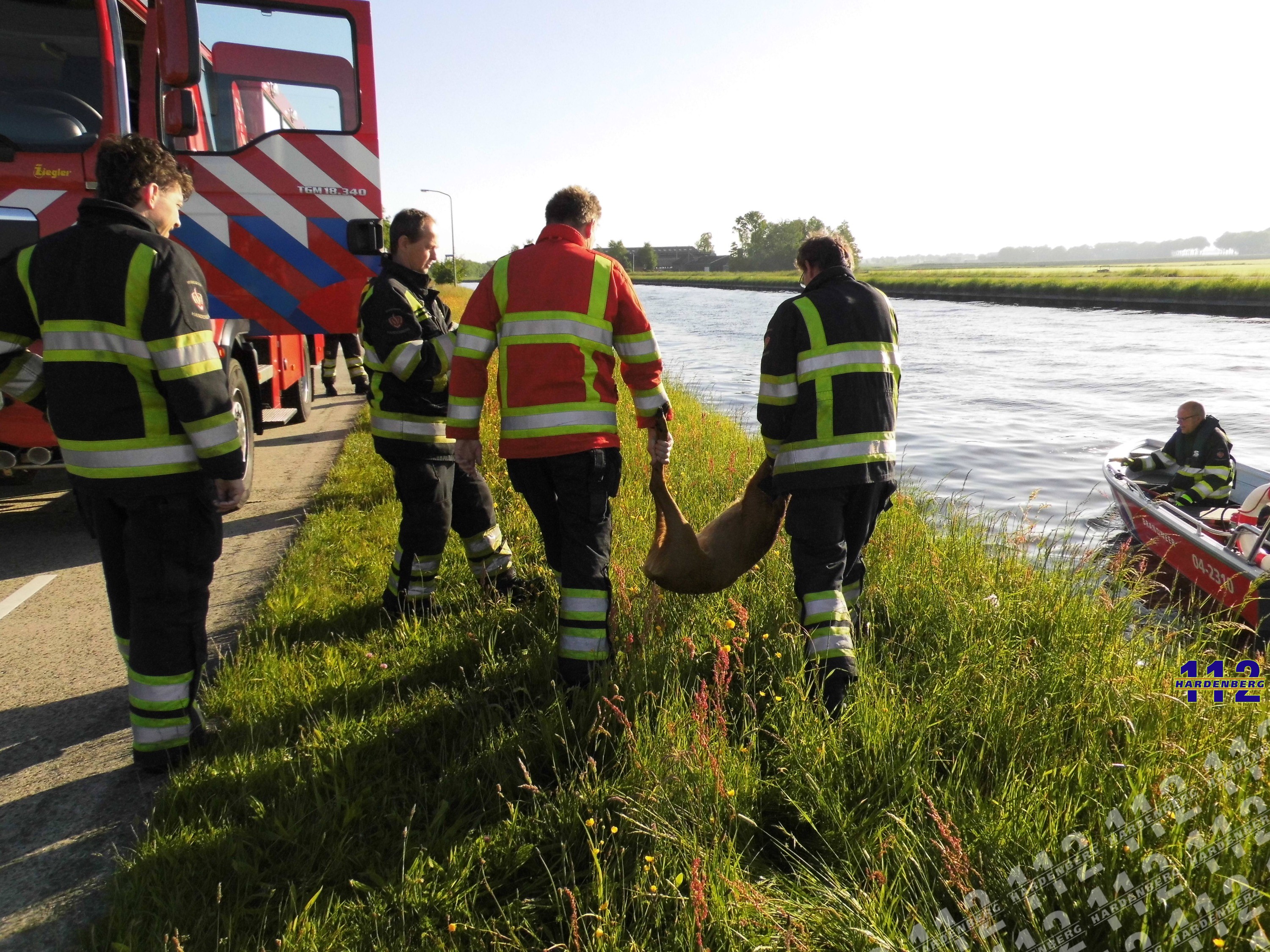 Tevens werd er een boot van de brandweer Hardenberg ingezet om het dier te redden. Helaas kwam hulp te laat en was het dier verdronken.