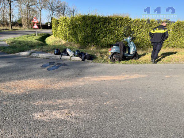 Op de Jachthuisweg in Heemserveen is vrijdagmorgen een scooter met daarop twee personen onderuit gegaan.