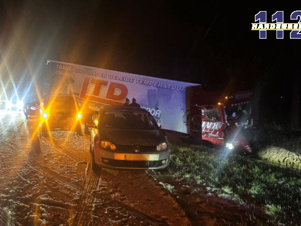 Terwijl de cabine in het water zakte, bleef de oplegger in de berm steken. De chauffeur kwam met de schrik vrij en bleef ongedeerd. Vanwege hevige sneeuwval werd de weg deels afgesloten, zodat bergingsdiensten hun werk veilig konden uitvoeren. Gladheid speelde vermoedelijk een grote rol.