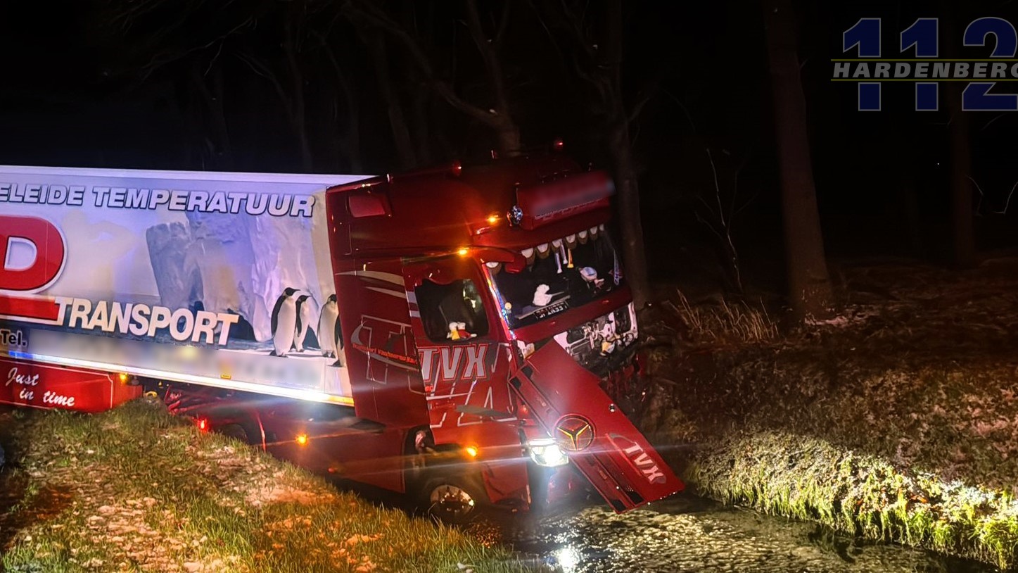Kort na middernacht is een vrachtwagen in de sloot gereden tussen Dedemsvaart en Balkbrug.